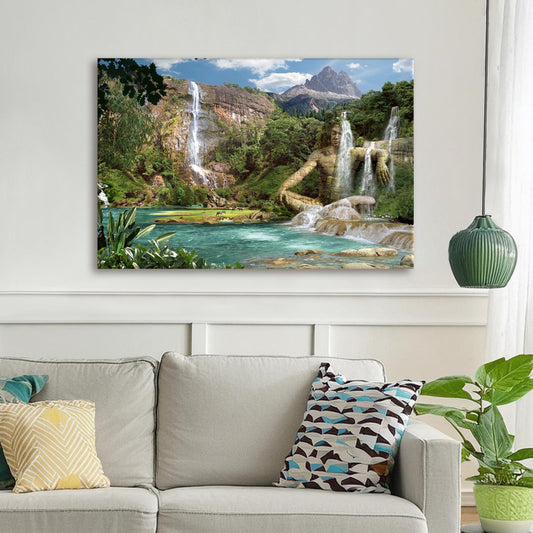 Waterfalls Mountain - Kunstdruck+ weißer Rand