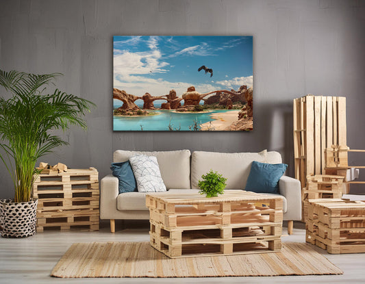 ROUTE 66 - THE GATE schwarz Weiß - Gerahmte Leinwand