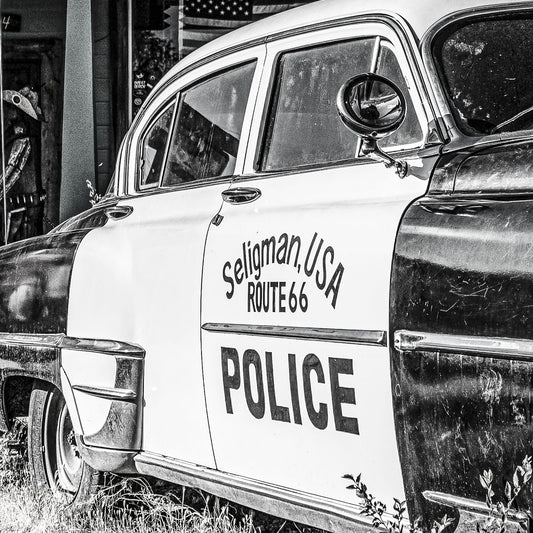 Route 66 Police Car Black-White - Kunstdruck+ weißer Rand