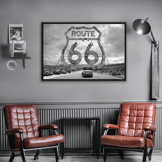 ROUTE 66 - THE GATE schwarz Weiß - Gerahmte Leinwand