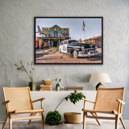 Route 66 Police Car - Gerahmte Leinwand