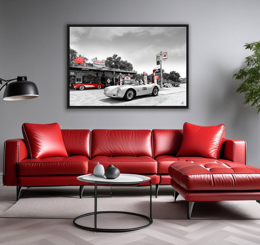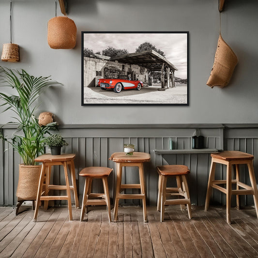 Route 66 Corvette - Gerahmte Leinwand