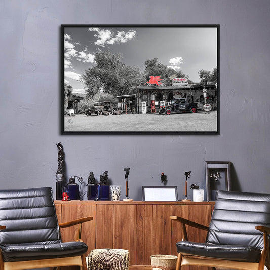 Route 66_Store - Gerahmte Leinwand