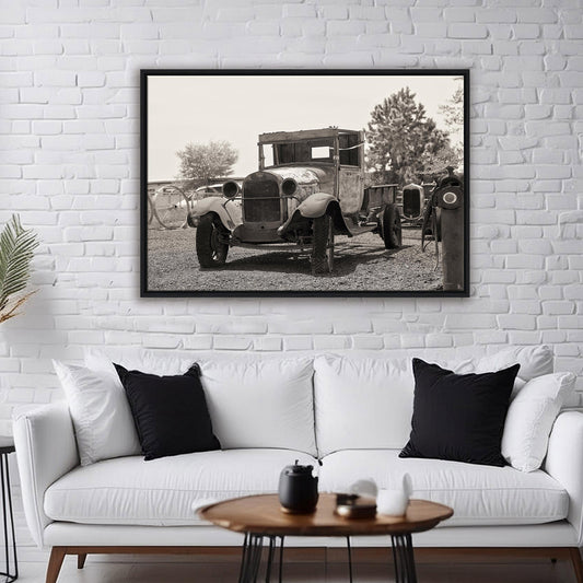Route 66-Ford Pickup Truck - Gerahmte Leinwand