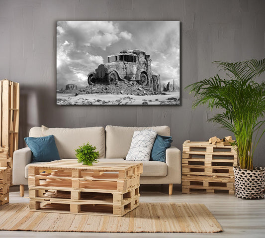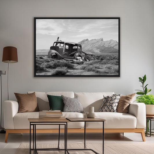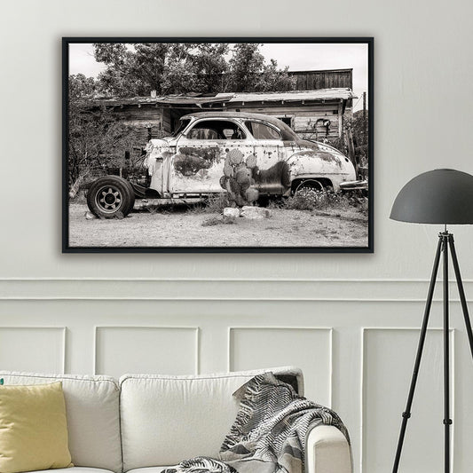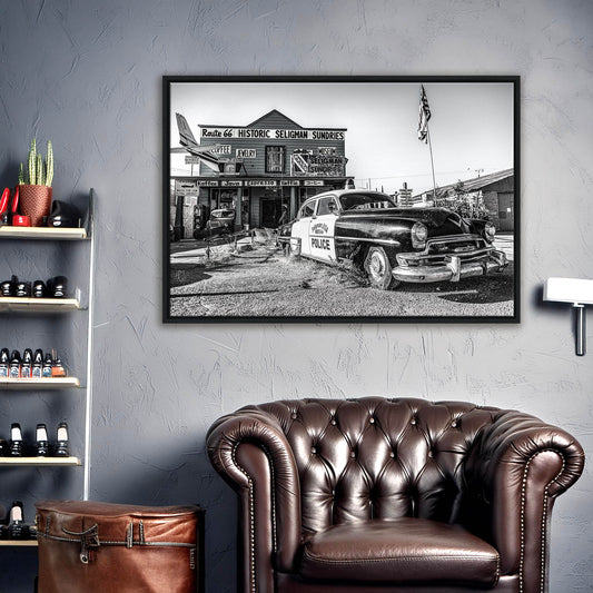 Route 66 Police Car_Black-White - Gerahmte Leinwand