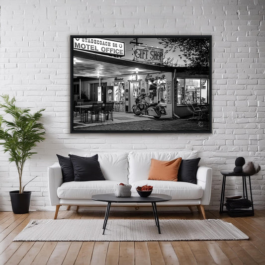 ROUTE 66 - THE GATE schwarz Weiß - Gerahmte Leinwand