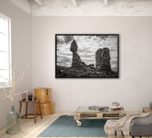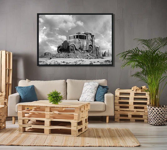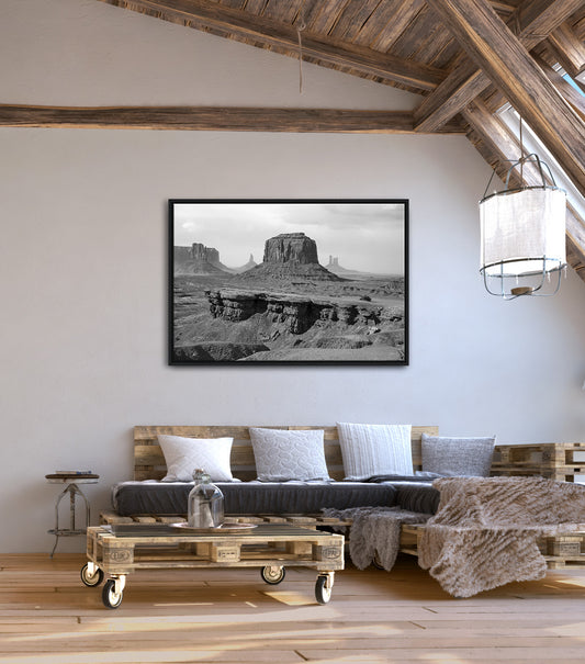Monument Valley_schwarz weiß - Gerahmte Leinwand
